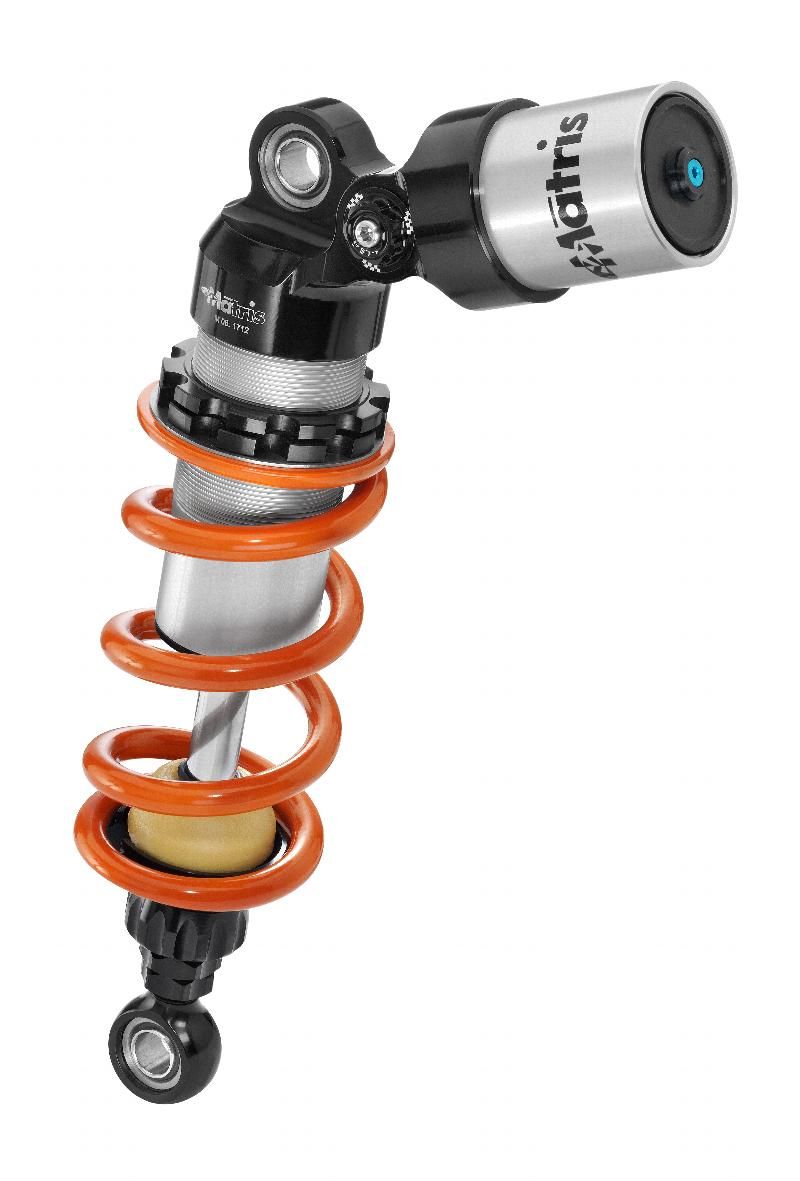 Αμορτισέρ Monoshock με διπλή ρύθμιση και ξεχωριστό δοχείο αζώτου. Ο κύλινδρος του αμορτισέρ είναι κατασκευασμένος από κράμα αλουμινίου Al 7075 και το έμβολο (Φ 16mm) από κράμα ατσαλιού υψηλής αντοχής με επίστρωση χρωμίου. Οι διαθέσιμες ρυθμίσεις του είναι: • Απόσβεση Επαναφοράς • Απόσβεση Συμπίεσης • Προφόρτιση με υδραυλικό μηχανισμό. • Ύψος. Το ελατήριο του αμορτισέρ είναι κατασκευασμένο από κράμα χρωμιο-μολυβδαινιούχου ατσαλιού. Η παραγγελία του αμορτισέρ γίνεται πάντα ανάλογα με τα κιλά του αναβάτη, ώστε να επιλεγεί το κατάλληλο ελατήριο.