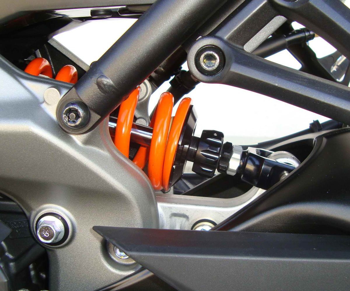 The “KD” single adjustment shock is intended principally as a shock for naked and street bikes.