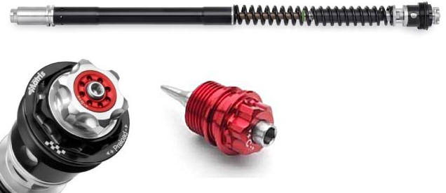 Hydraulic cartridge kit that completely replace all the existing original fork internals allowing a full adjustment of Compression, Rebound, Preload.