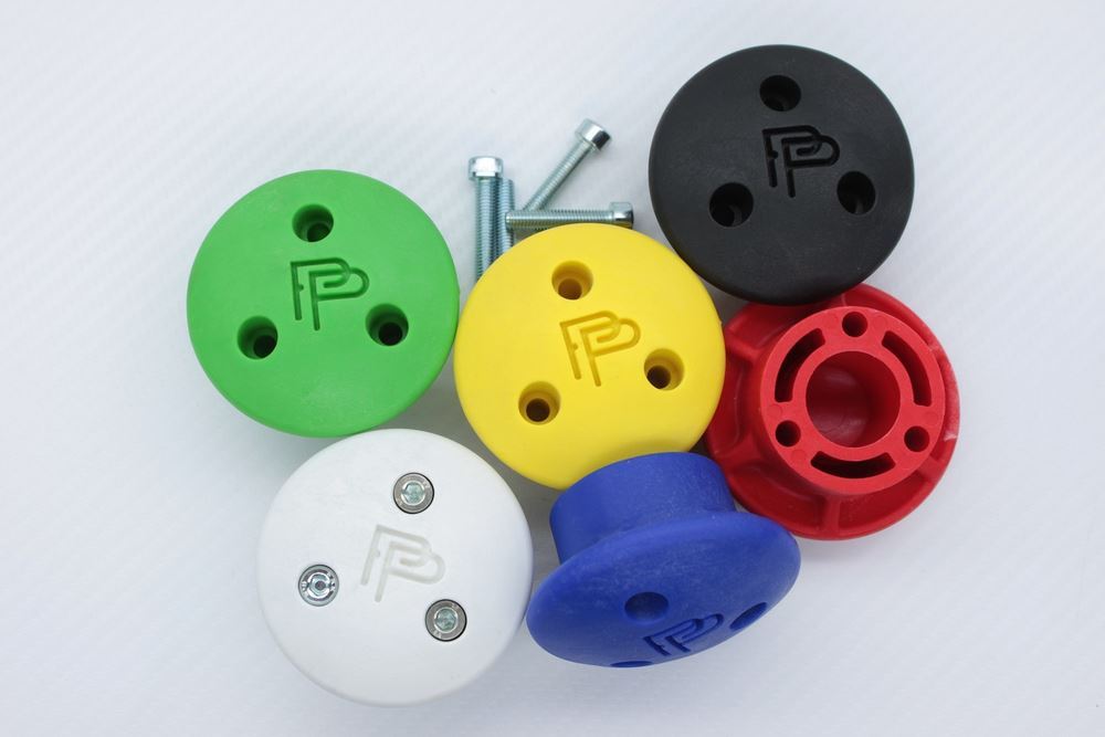 Προστατευτικά μανιτάρια PP Tuning. Η βάση τους είναι κατασκευασμένη από κράμα αλουμινίου 7075 T6. Το εξωτερικό μανιτάρι κατασκευάζεται με ακρίβεια σε μηχανή CNC έγχυσης υπό πίεση. Το μίγμα του αποτελείται από λείο πλαστικό και ανθρακόνημα, επιλογή που εγγυάται ανώτερη προστασία σε ενδεχόμενη πτώση. Το σετ περιλαμβάνει δύο βάσεις, δύο μανιτάρια και τις βίδες τους. Η βάση του μανιταριού μπορεί να παραγγελθεί σε ασημί ή μαύρη ανοδίωση. Το πλαστικό μανιτάρι μπορεί στη συνέχεια να αντικατασταθεί παραγγέλνοντας οποιαδήποτε έξτρα επιλογή από τη λίστα των ανταλλακτικών, η οποία περιλαμβάνει μεγάλη ποικιλία χρωμάτων (μαύρο, κόκκινο, μπλε, κίτρινο, άσπρο και πράσινο), καθώς και δύο τύπους αλουμινένιων μανιταριών.