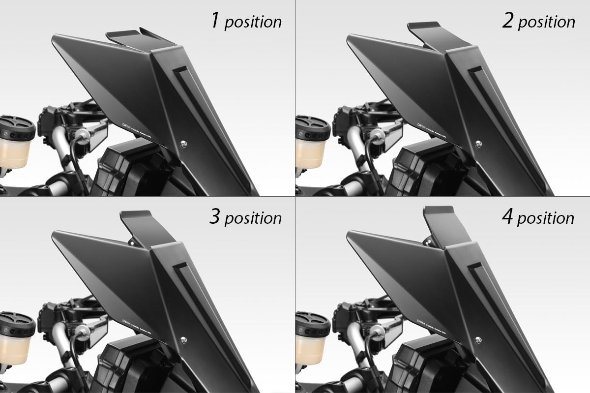 Ειδικό παρμπρίζ από αλουμίνιο 5754 με επίστρωση σκόνης που προσφέρει τη δυνατότητα ρύθμισης του εκτροπέα σε τέσσερις διαφορετικές θέσεις με αυτόματο κλείδωμα.
