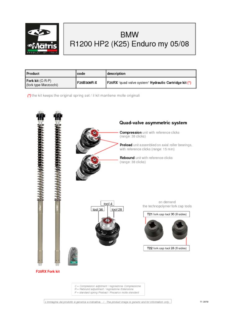 Υδραυλικό κιτ φυσιγγίων που αντικαθιστά πλήρως όλα τα υπάρχοντα γνήσια εσωτερικά πιρουνιού επιτρέποντας την πλήρη ρύθμιση συμπίεσης, επαναφοράς, προφόρτισης.