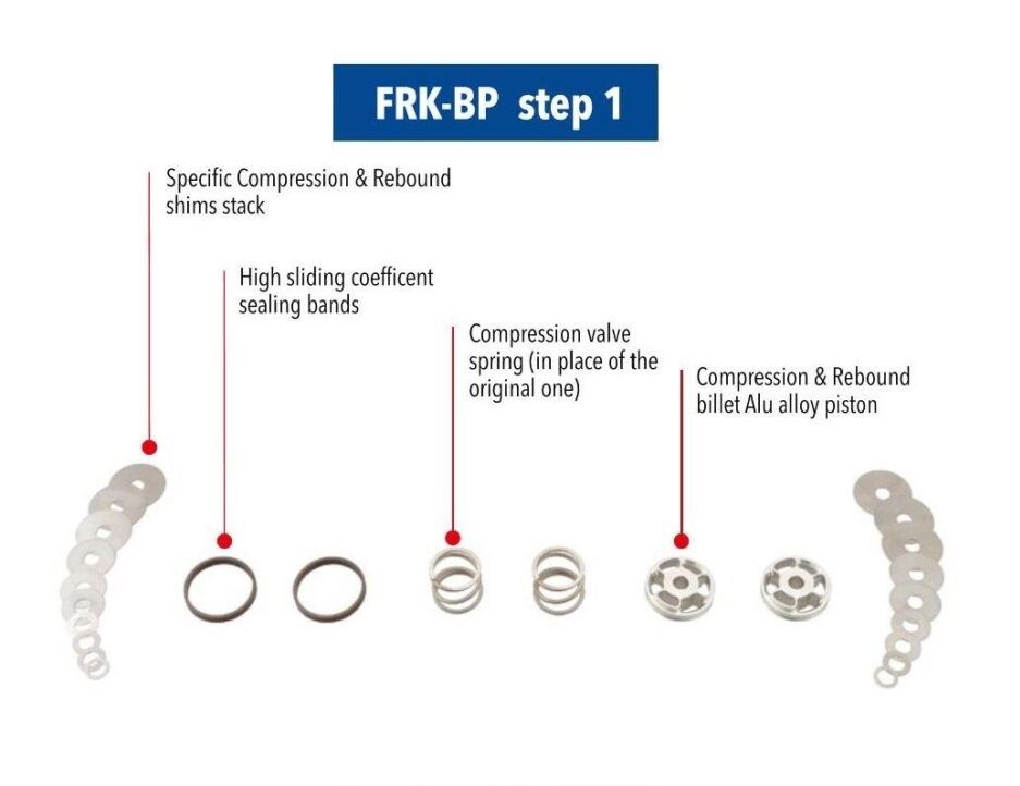 The FRK-BP is the first step to modify the fork hydraulic valves of 41mm & 43mm “BPF” Showa fork.