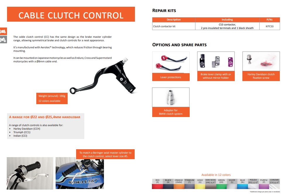Ταιριάζει σε ιαπωνικές μοτοσυκλέτες καθώς και σε μοτοσυκλέτες Enduro, Cross και Supermotard με κυλινδρικό κάλυμμα καλωδίου Ø8 mm.