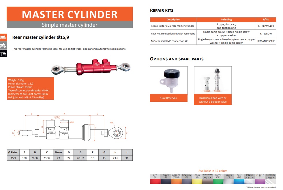 Αυτή η ταλαντευόμενη τρόμπα πίσω φρένου είναι πλήρως τοποθετημένη σε σφαιρικά ρουλεμάν αεροδιαστημικής ποιότητας. Ο σχεδιασμός της επιτρέπει επίσης να εισέλθει σε ένα ενσωματωμένο κύκλωμα πέδησης που συνδέει το μπροστινό και το πίσω μέρος.