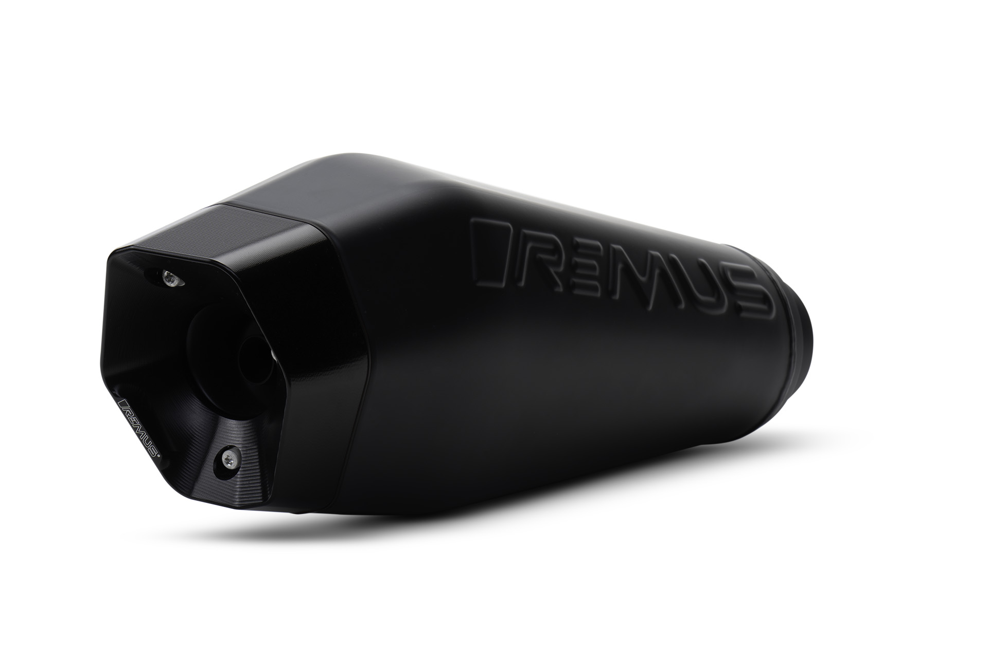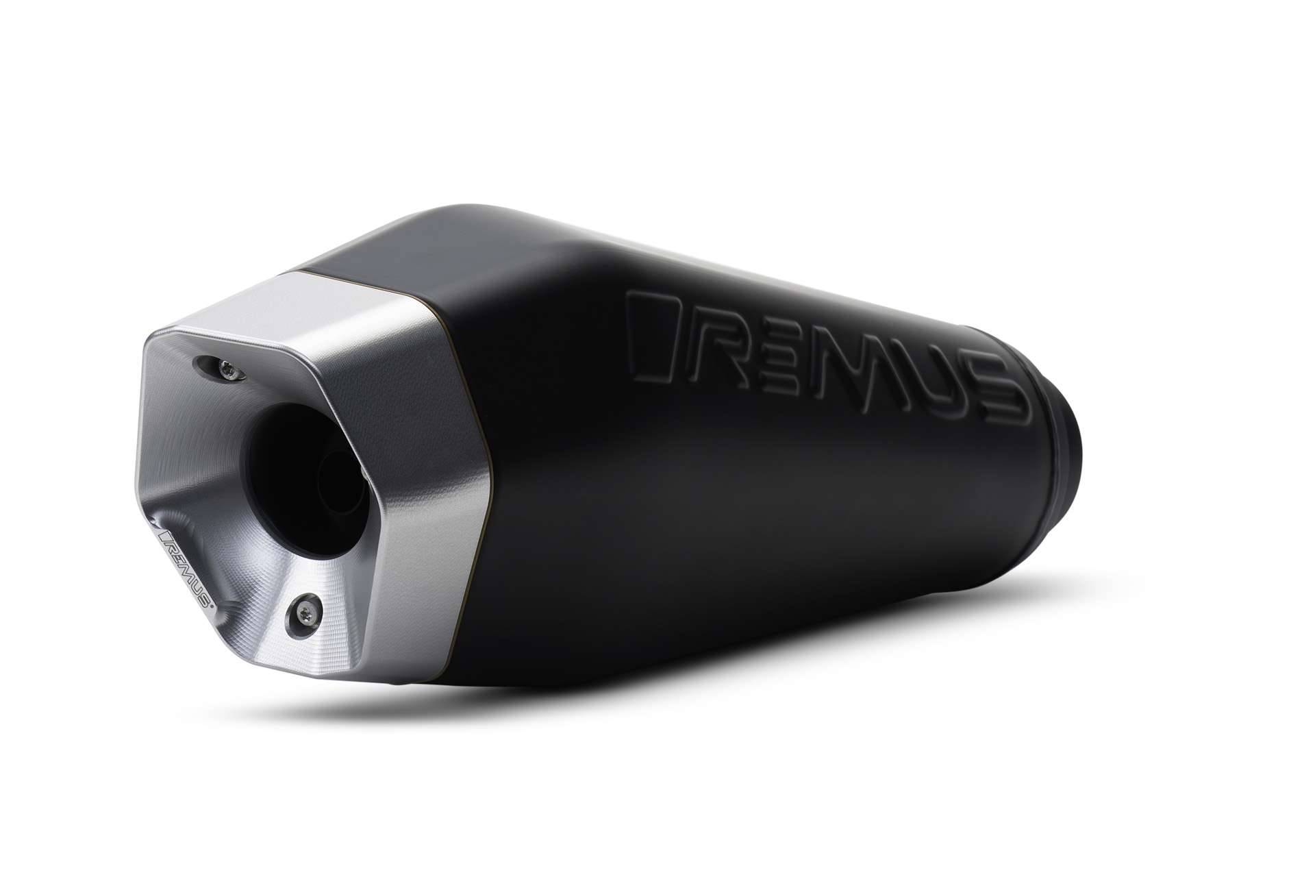 The REMUS RS 2.0 holds the impressive match with the customized end cap. The aluminum complements each other perfectly in this form and is unique in this vehicle derivative. It is available in black anodized & aluminum machined!