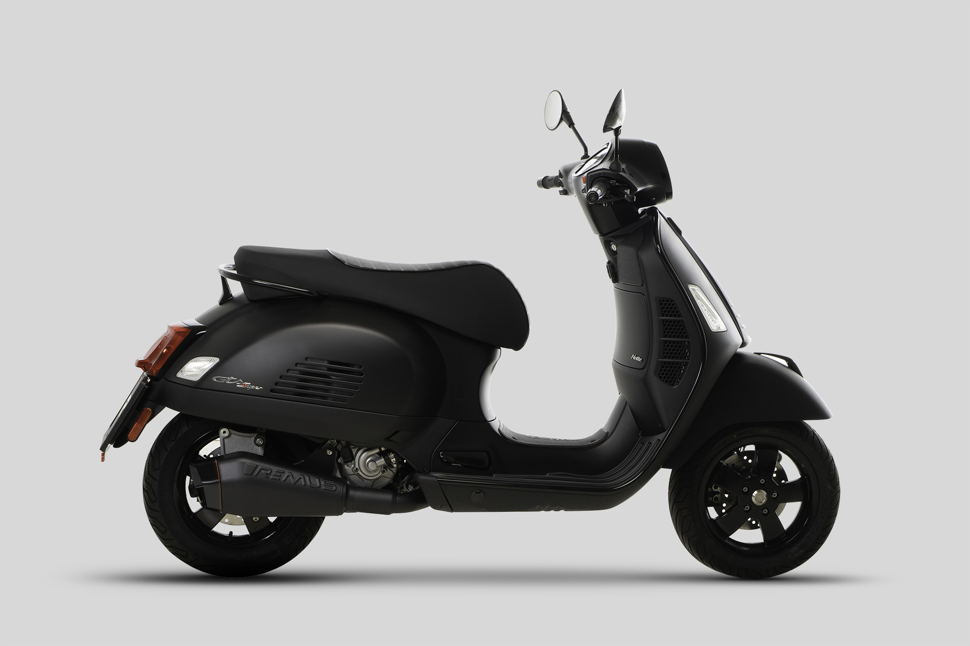 The exclusive muffler for your Vespa model. The exhaust body in matte black is distinguished by the hydroformed REMUS logo especially from other mufflers.