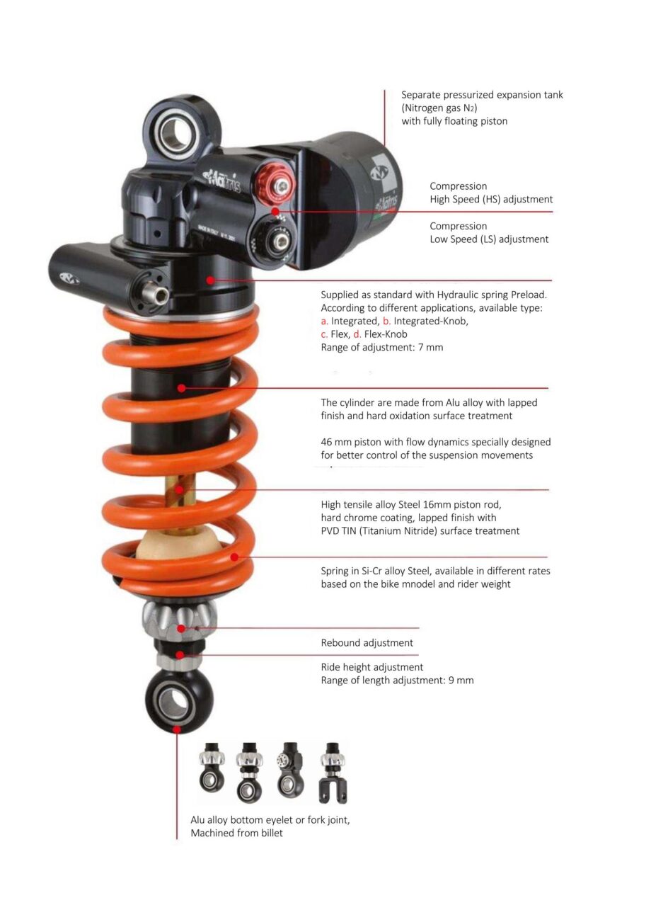 Κατεργασία υψηλής ακρίβειας με στόχο τη μείωση του βάρους και της τριβής για τη βελτίωση της ολίσθησης, τη σταθερότητα σε υψηλές θερμοκρασίες, καθώς και τη λεπτή ρύθμιση της απόσβεσης για να εξασφαλίσει τη μεγαλύτερη ευαισθησία και εμπιστοσύνη στον αναβάτη και επίσης εξαιρετική σταθερότητα του πίσω άξονα. Η διαφορά στην απόσβεση γίνεται εύκολα αντιληπτή με κάθε ρύθμιση κλικ.