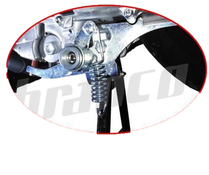 'Ενας μηχανισμός με κλειδί ασφαλείας τοποθετείται στο κεντρικό σταντ του σκούτερ και το μόνο που χρειάζεται πλέον είναι, όποτε παρκάρεις, μια απλή πίεση με το πόδι για να κλειδώσει το σταντ. Ξεκλειδώνει εξίσου εύκολα με το κλειδί της.