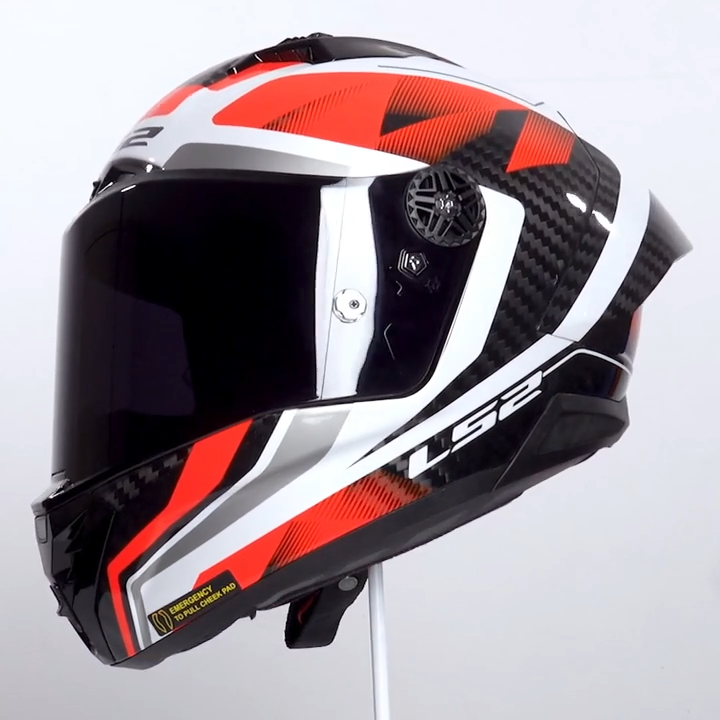 Αγωνιστικό κράνος που αναπτύχθηκε από τις γνώσεις που αποκτήσαμε στους αγώνες μηχανοκίνητου αθλητισμού. Ελαφρύ και με εξαιρετική αεροδυναμική. Μέγιστη αντοχή χάρη στο 100% κέλυφος από ανθρακονήματα. Εξαιρετική περιφερειακή όραση. Σύστημα μαξιλαριών μάγουλων απελευθέρωσης έκτακτης ανάγκης. Ευρεία αντιχαρακτική ζελατίνα με υποδοχές για το σύστημα κατά του θαμπώματος Pinlock Max Vision.
